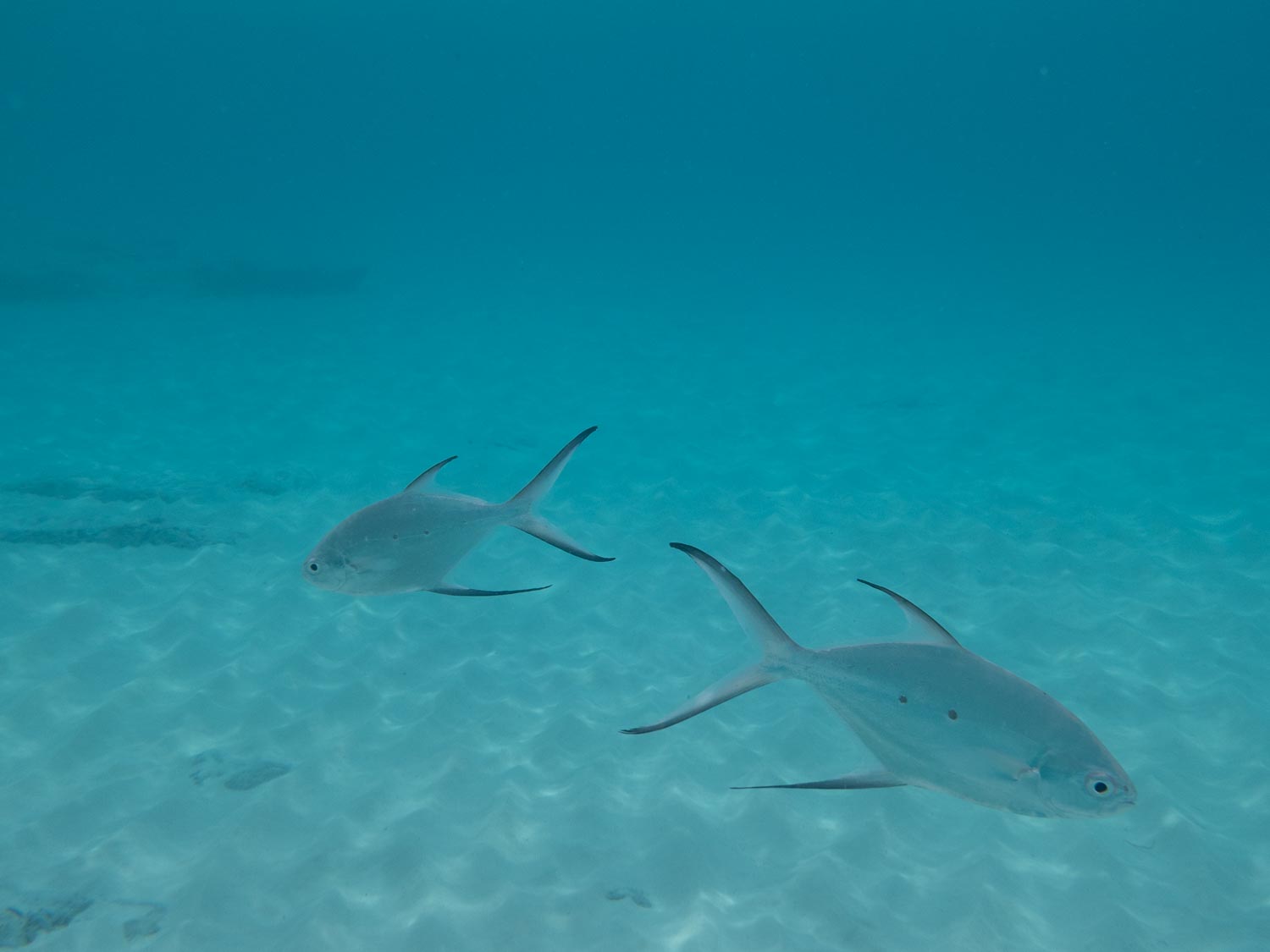 Tiny fish drifting past.