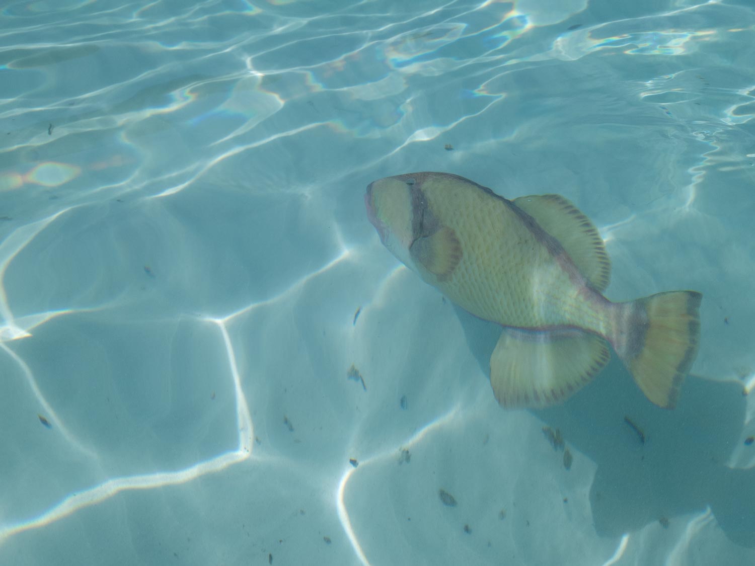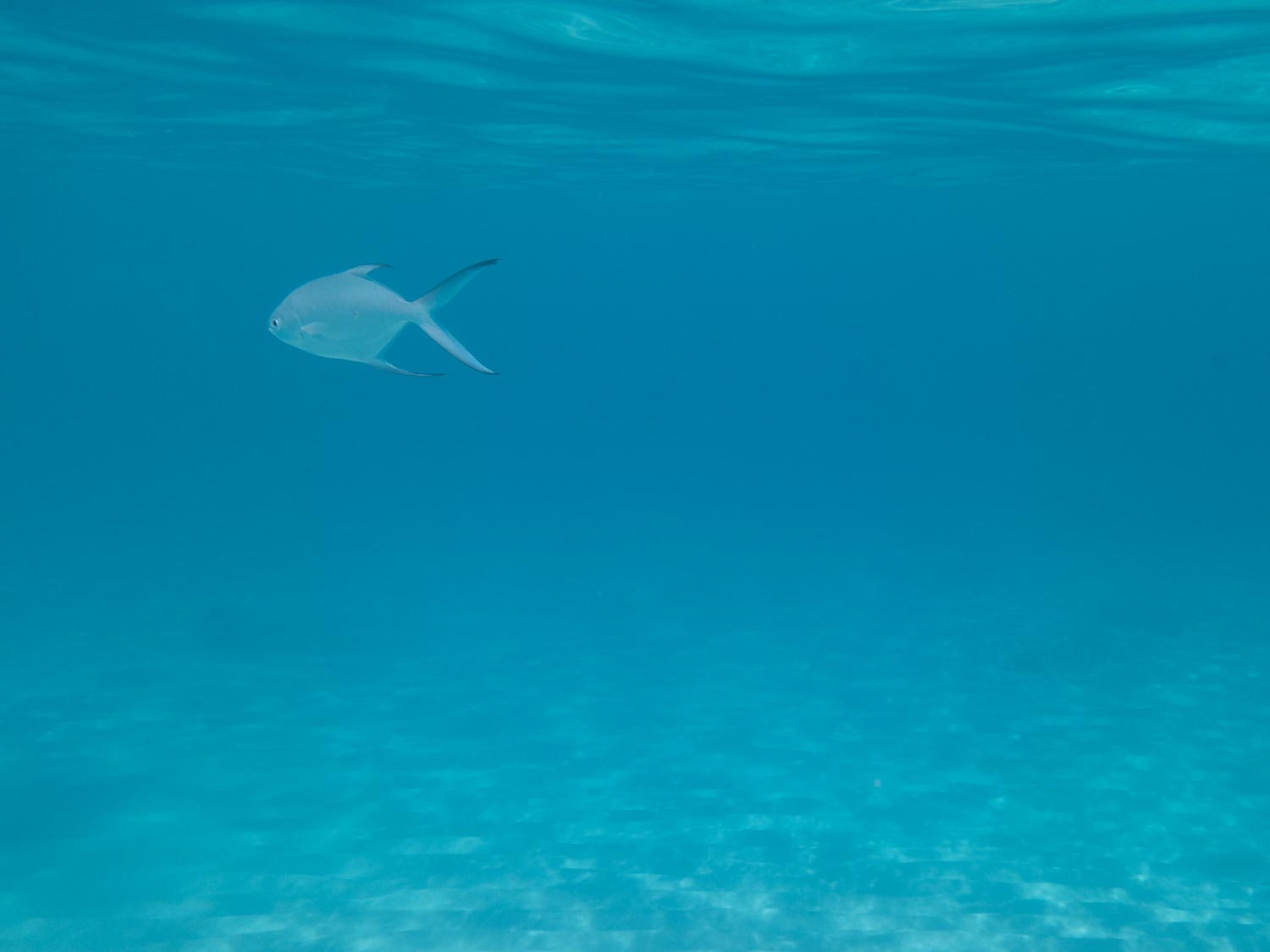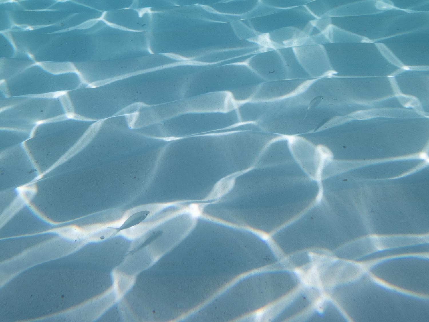 Fish drift slowly through soft, bright water.