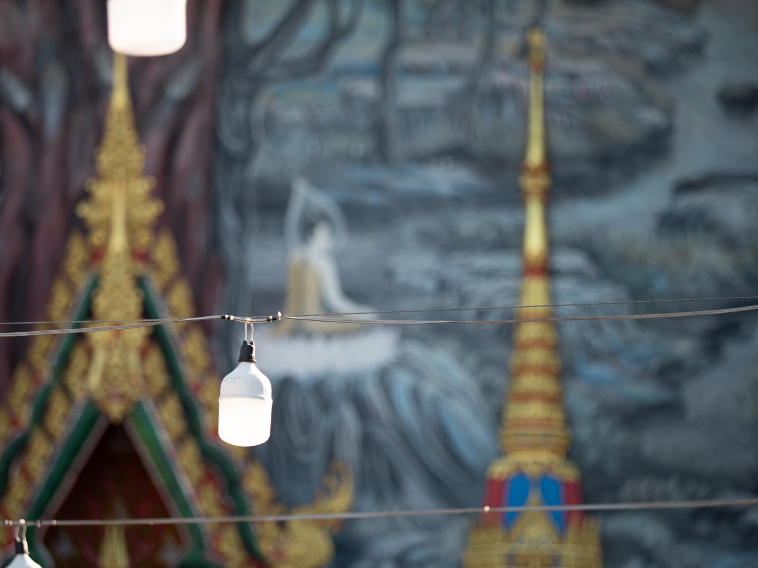 Every now and then, a plane glides low in the distance, preparing to land at Suvarnabhumi, adding a soft, cinematic line across the sky.