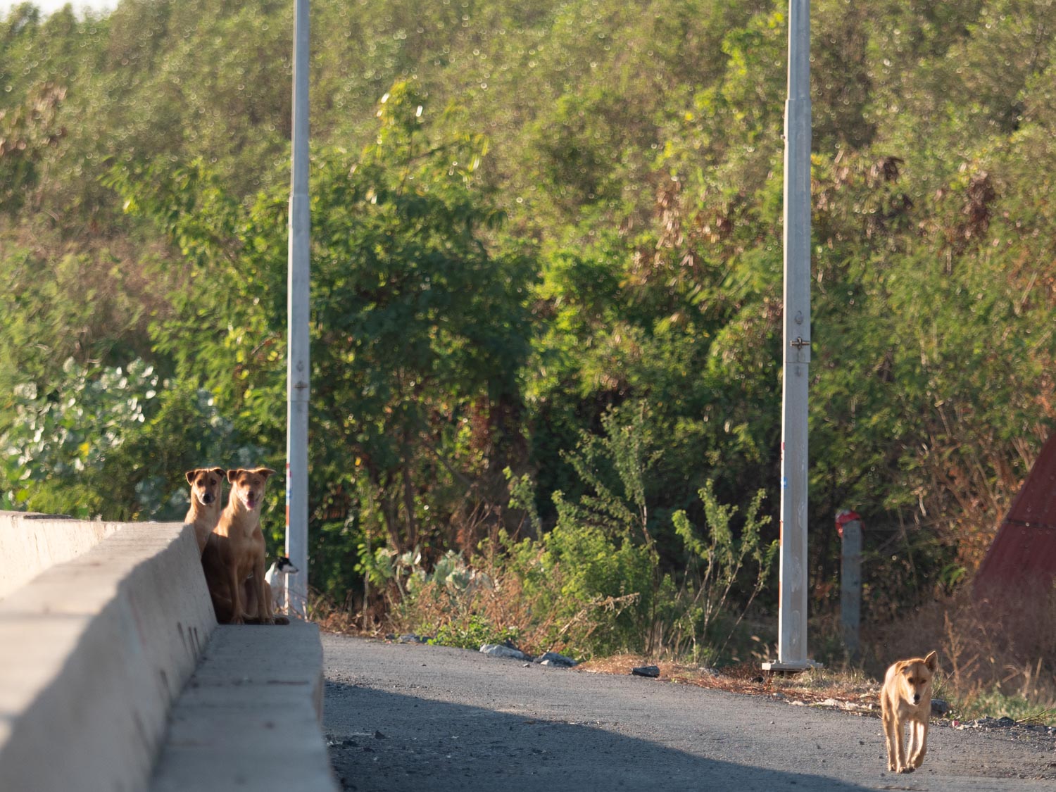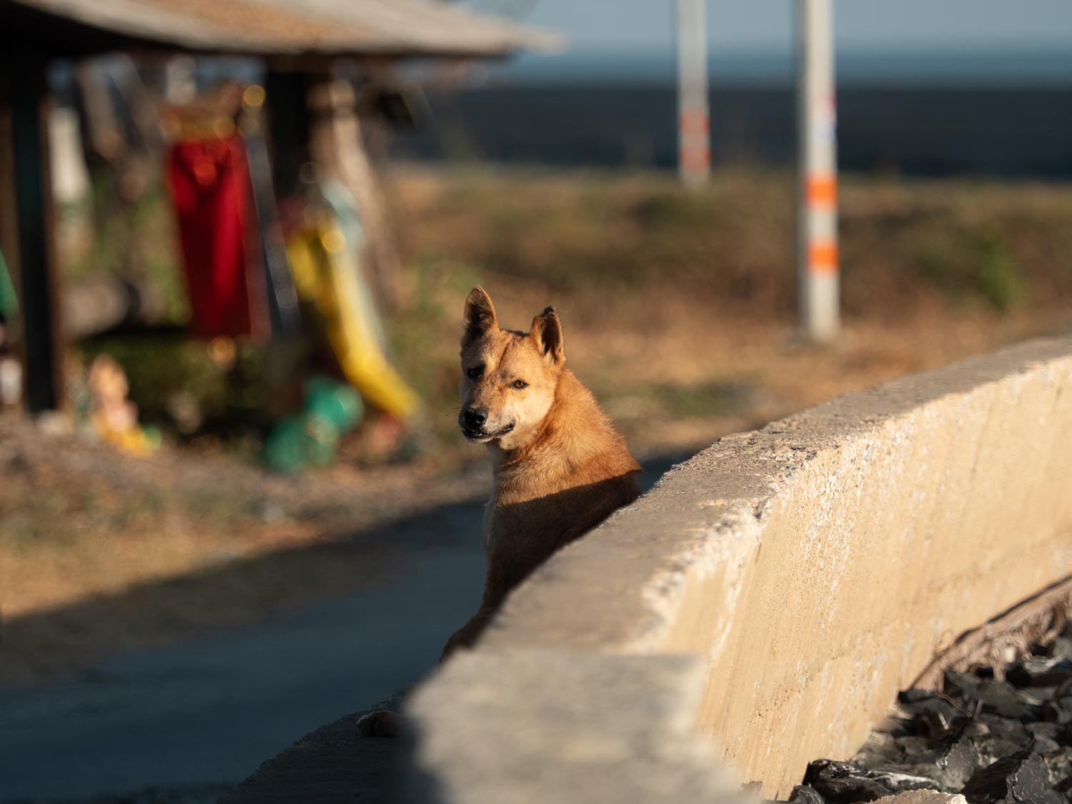 A few local dogs live here — they might bark at strangers at first, but a small treat changes everything. They soften, they trust, and sometimes they walk beside you like tiny guides showing you around their quiet world.
