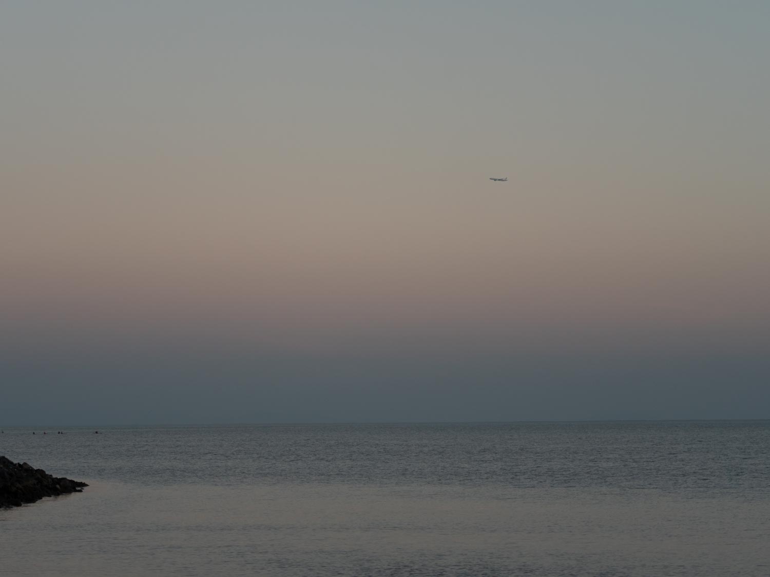 A plane might glide across the horizon at the perfect moment, its silhouette passing through the last warm light of the day.