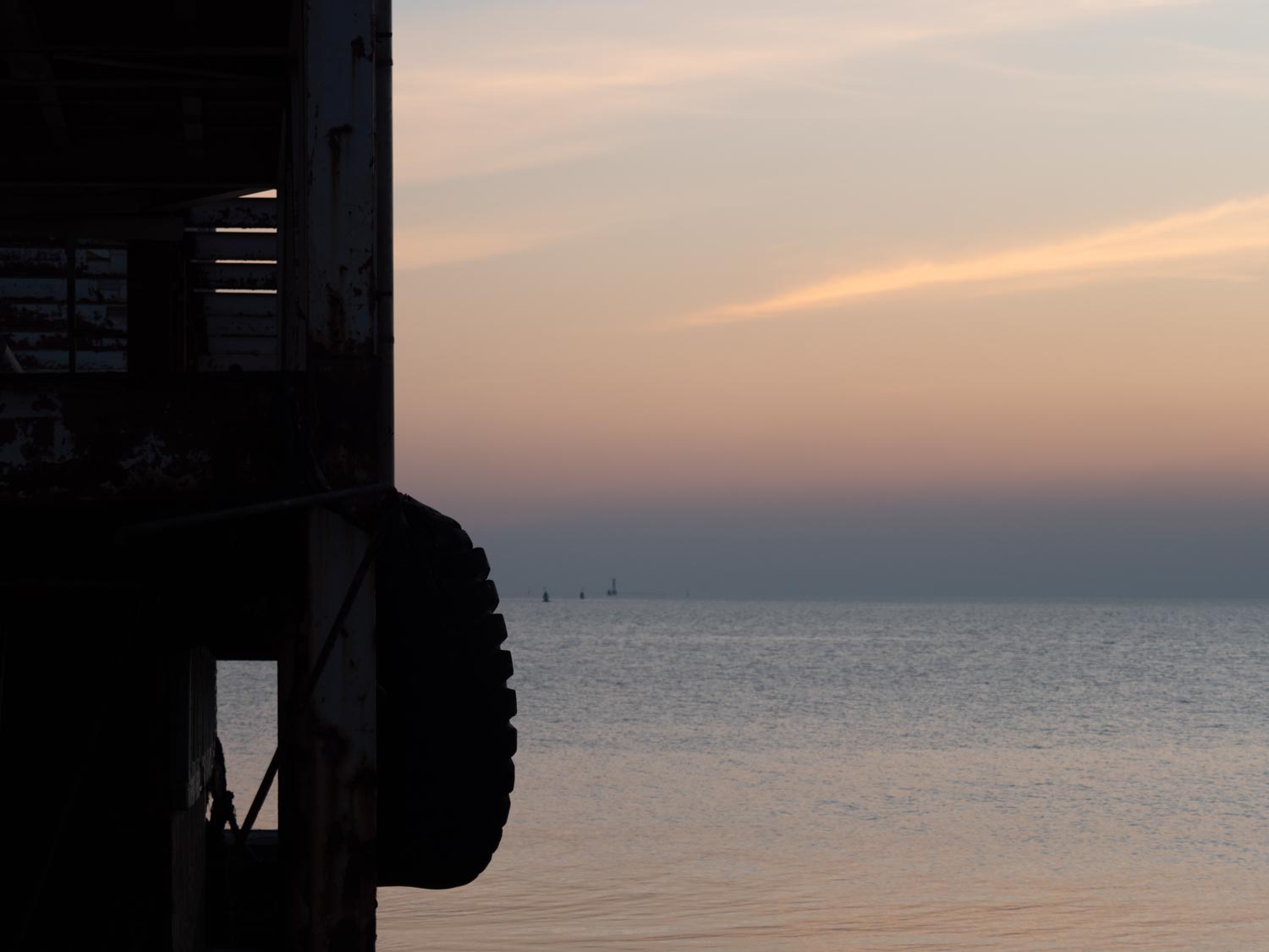 The sky shifts slowly into peach, then into a sleepy pink.